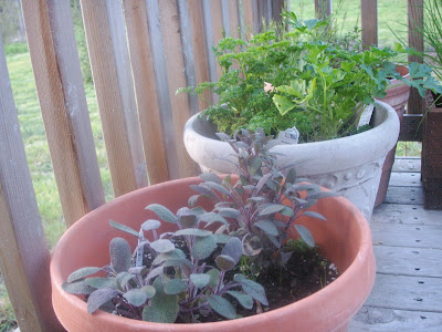 sage and parsley in containers on the deck